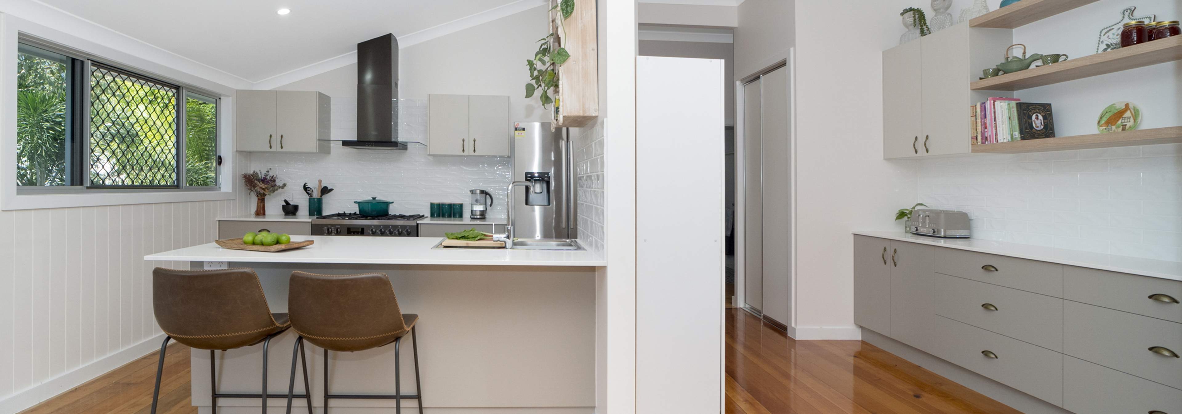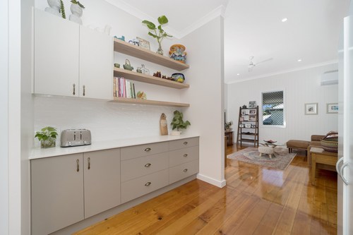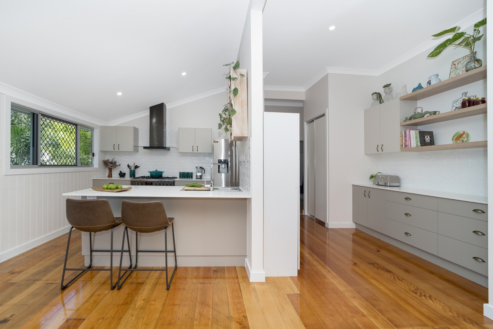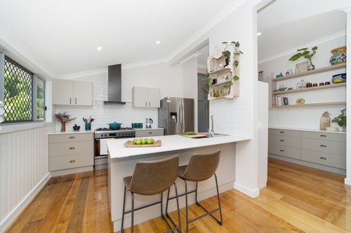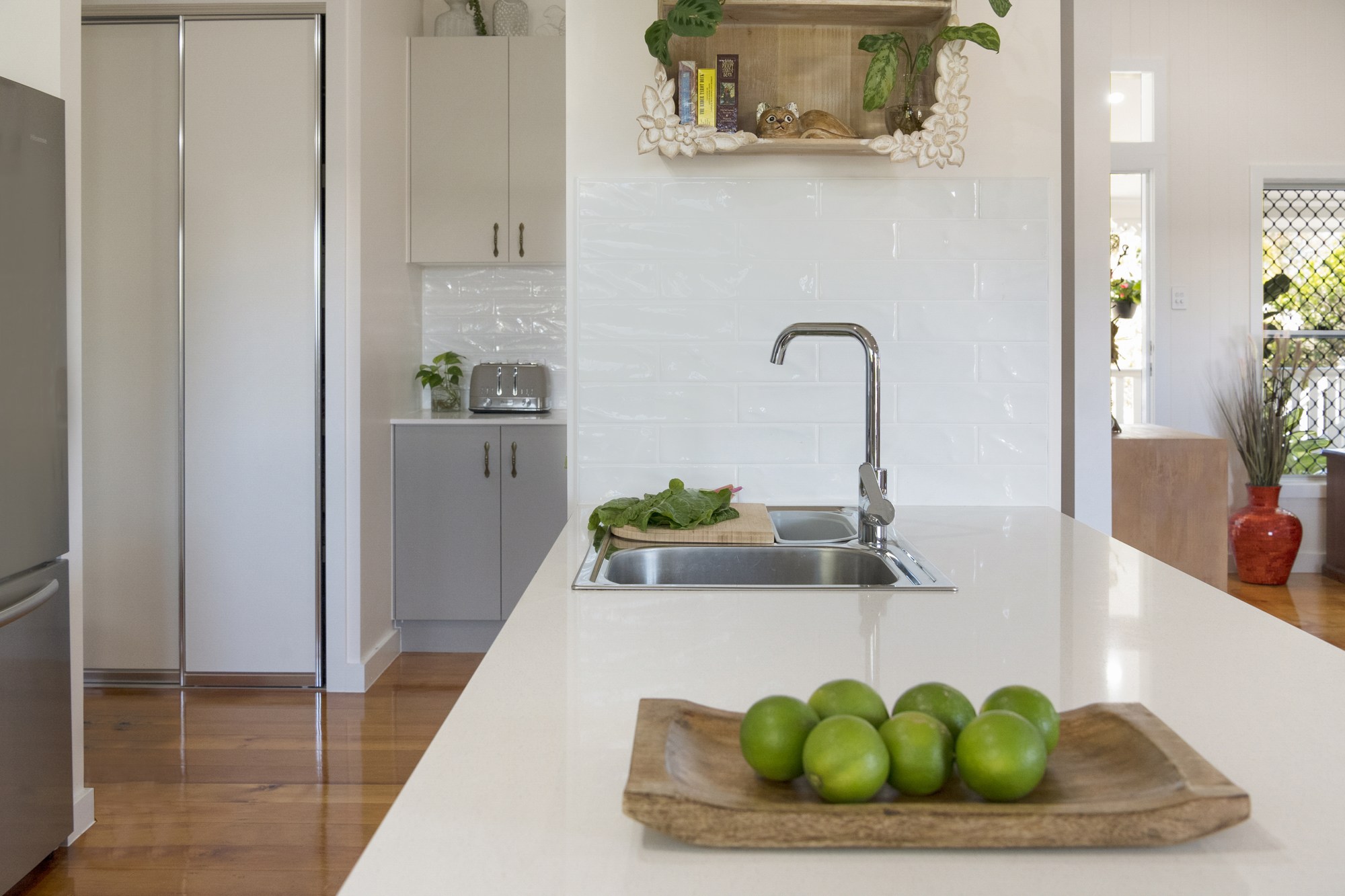 This kitchen was designed to be sympathetic to the homes character as well as offering plenty of storage and bench space, designed to capture the views of Castle Hill.